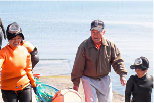 채취한 해산물을 가정경제에 큰 보탬이 된다 -
