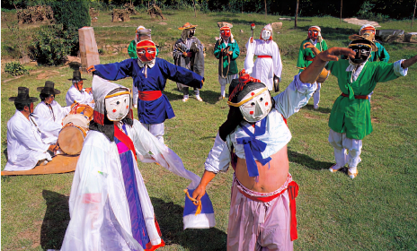 - 탈춤 등 국가무형유산의 공연은 매년 정해진 기간(정월, 단오, 백중, 추석 등) 동안 전국 각 전승지역에서 행해집니다. 특히 안동의 탈춤공연장과 같이 매주 상설공연이 이루어지는 곳도 있습니다.